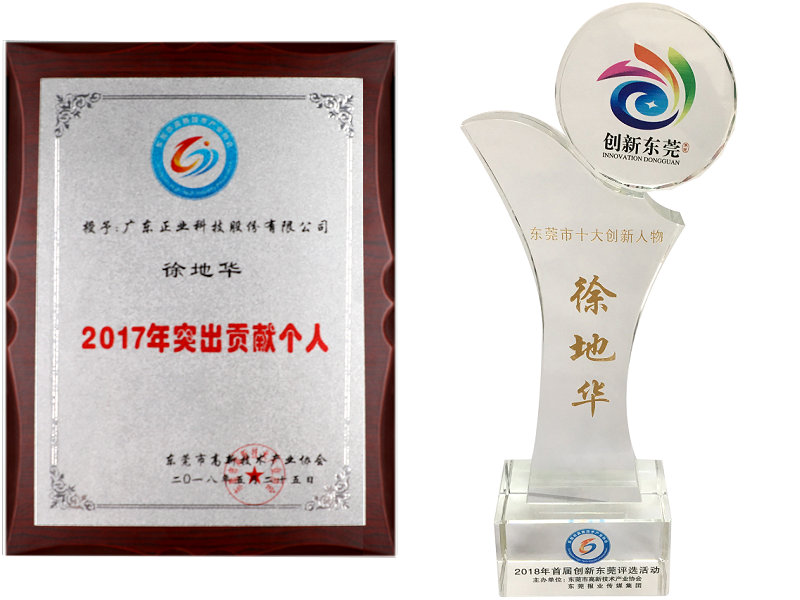 徐董事長曾榮獲2018年度東莞市十大創(chuàng)新人物、2017年度東莞十大經濟人物和2017年度突出貢獻個人等榮譽獎項,這對徐董事長的研發(fā)創(chuàng)新和貢獻成果給予了高度的肯定和評價。