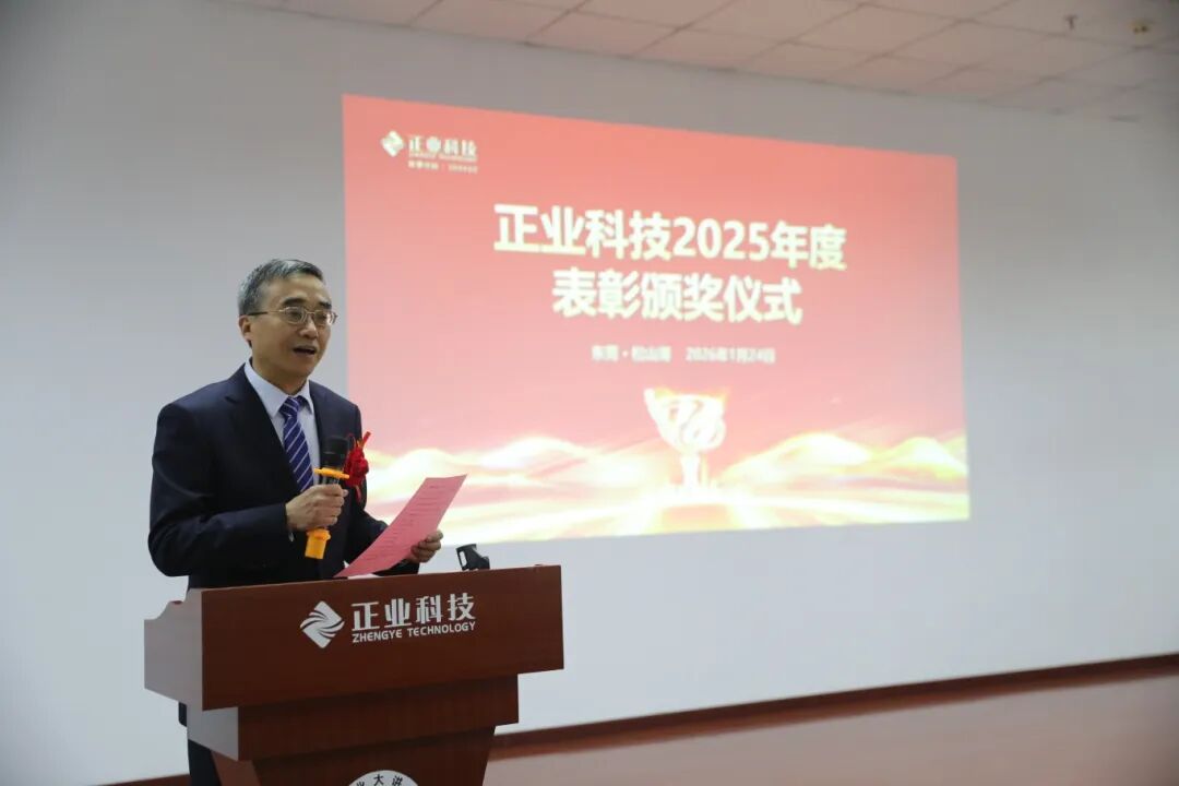 2026年1月24日,廣東正業(yè)科技股份有限公司(以下簡稱:正業(yè)科技)“2025年度總結(jié)暨表彰大會(huì)”隆重召開。董事長余笑兵、黨支部書記、總裁方志華、黨支部副書記、研究院院長徐地華等集團(tuán)管理層出席了本次會(huì)議,共同回顧2025年的奮斗足跡,共繪新年發(fā)展藍(lán)圖。