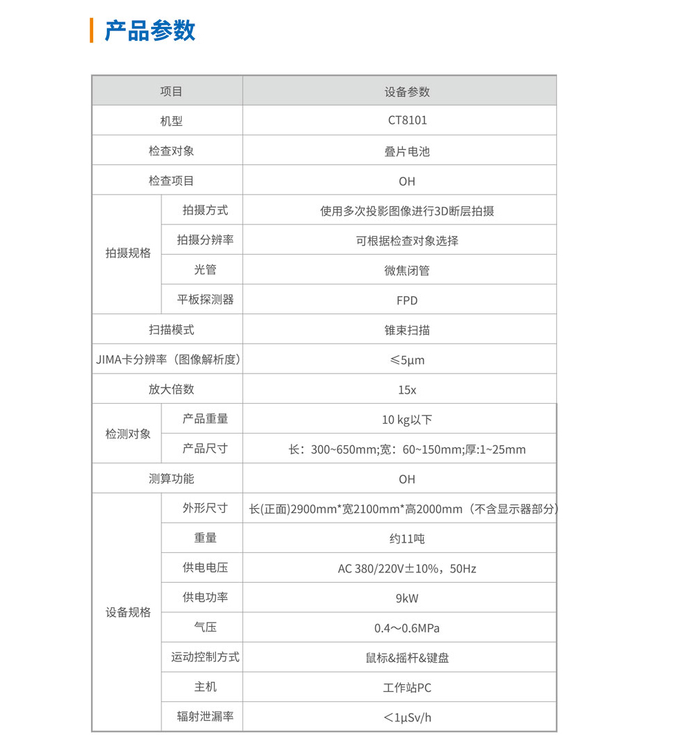 利用X射線的透視能力,從不同角度對(duì)電芯角位進(jìn)行透射,并在平板探測(cè)器上成像,拍攝一系列不同角度的二維透視圖像,再通過(guò)三維重構(gòu)軟件合成為高分辨率三維圖像數(shù)據(jù),即可在任意位置、任意方向進(jìn)行虛擬剖切觀測(cè),然后結(jié)合智能化軟件算法在圖像上對(duì)電芯的OH進(jìn)行分析判斷,主要用于新能源行業(yè)的動(dòng)力疊片電池的OH檢測(cè)與質(zhì)量控制。